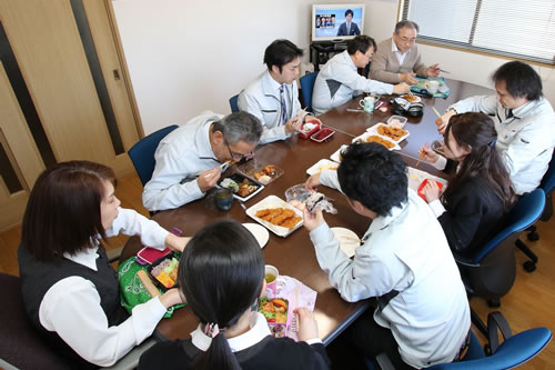 みんなで会議室を占拠し、ワイワイと楽しくランチタイム。